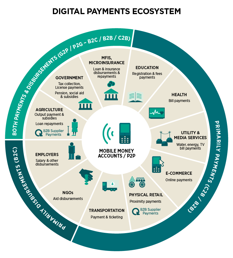 - Image attribution: Mobile money ecosystem Africa by Le gracié, Wikimedia Commons, CC BY-SA 4.0.